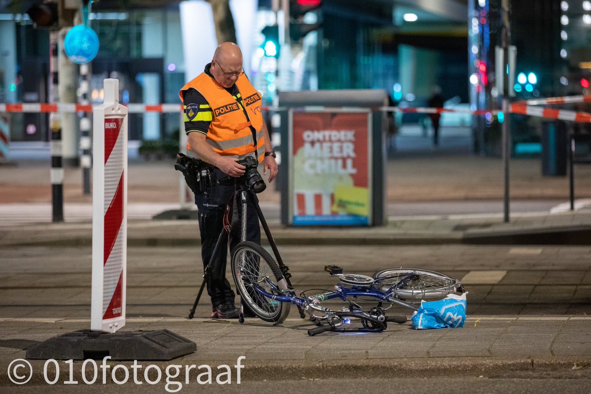 Een vrouw is afgelopen nacht zwaargewond geraakt nadat zij op haar fiets werd geschept door een politiebus op het Hofplein in Rotterdam. Hoe het ongeval precies heeft kunnen gebeuren is nog onduidelijk. Verkeersongevallen analisten van de politie onderzoeken de zaak.