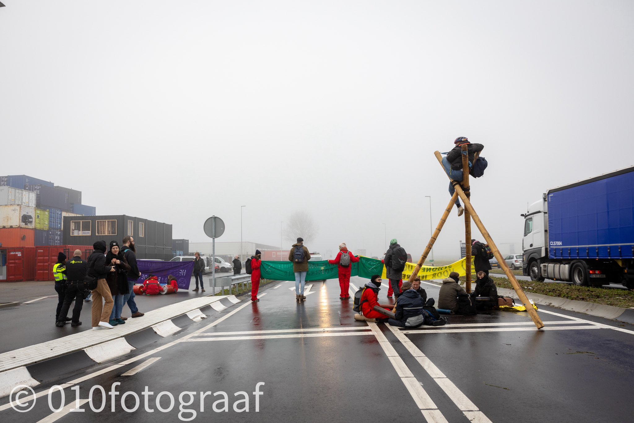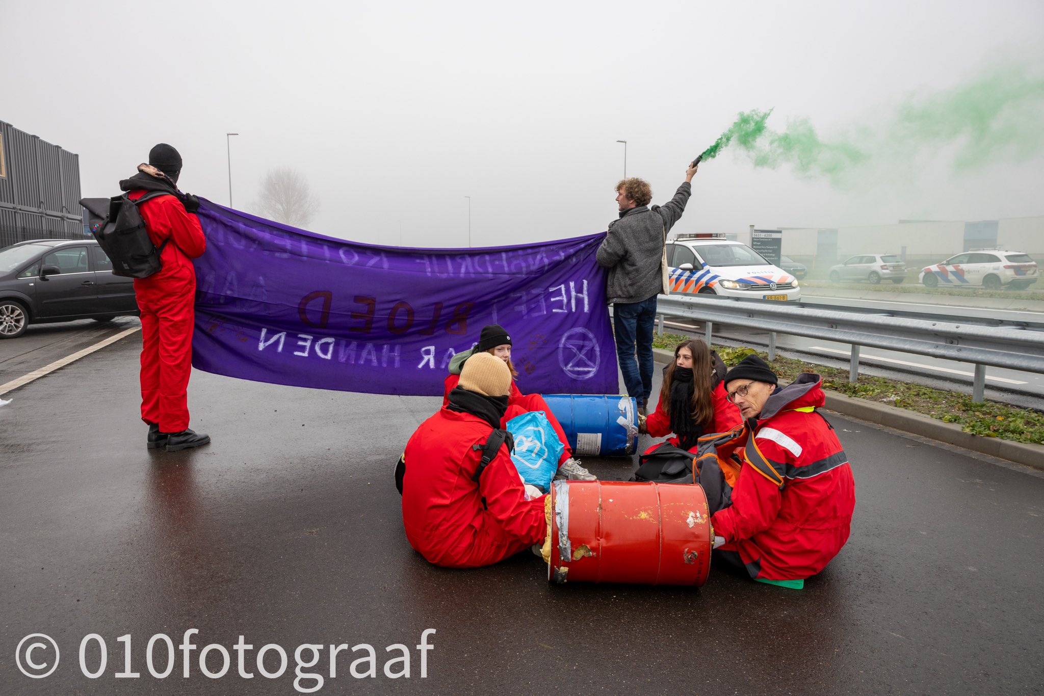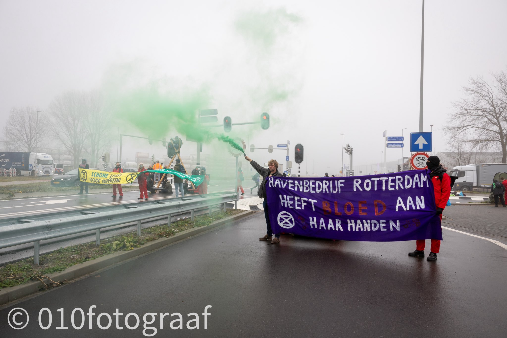 Vanmorgen hebben klimaatactivisten van Extinction Rebellion (XR) enkele toegangswegen in de Rotterdamse Europoort bezet.